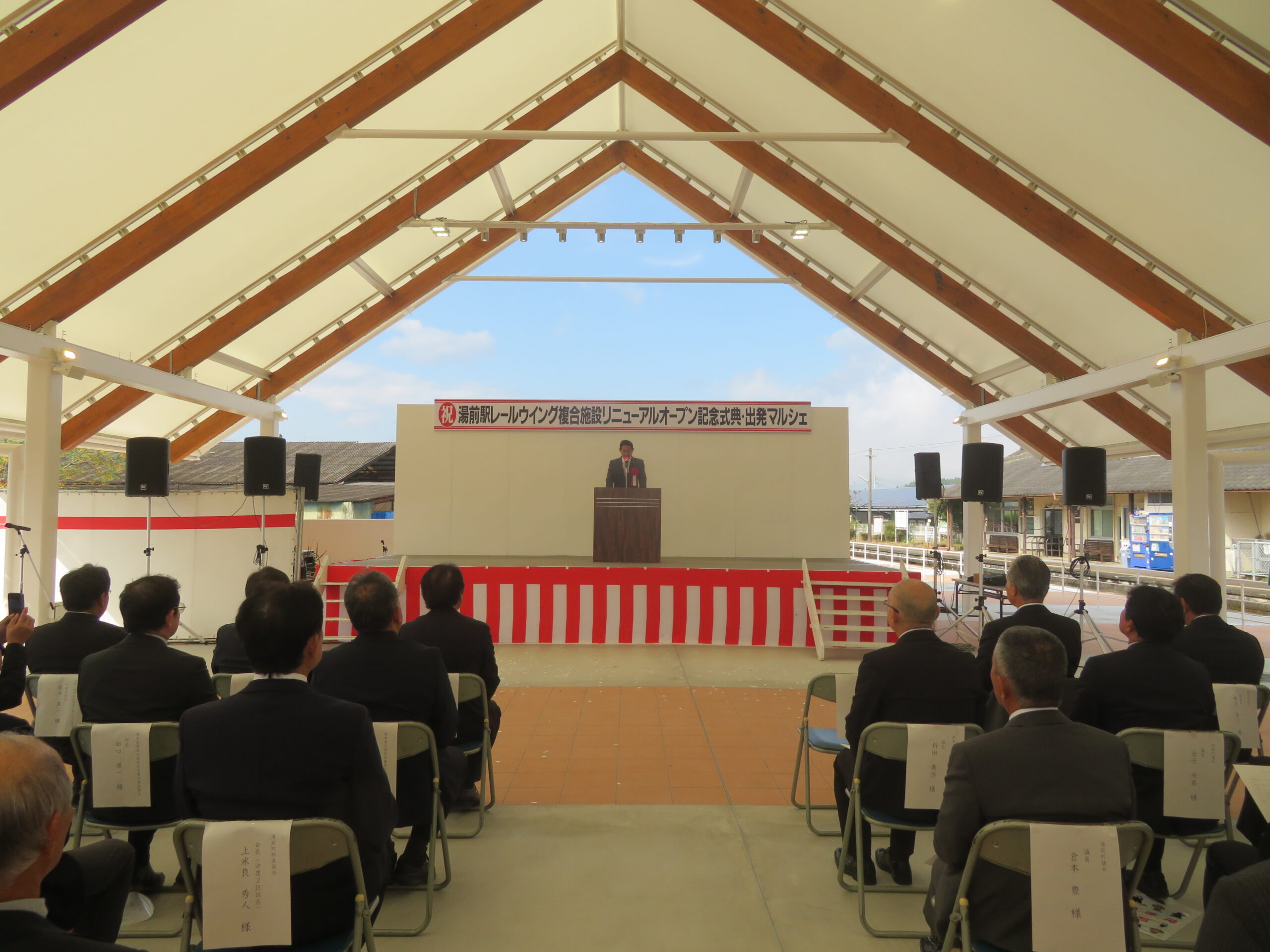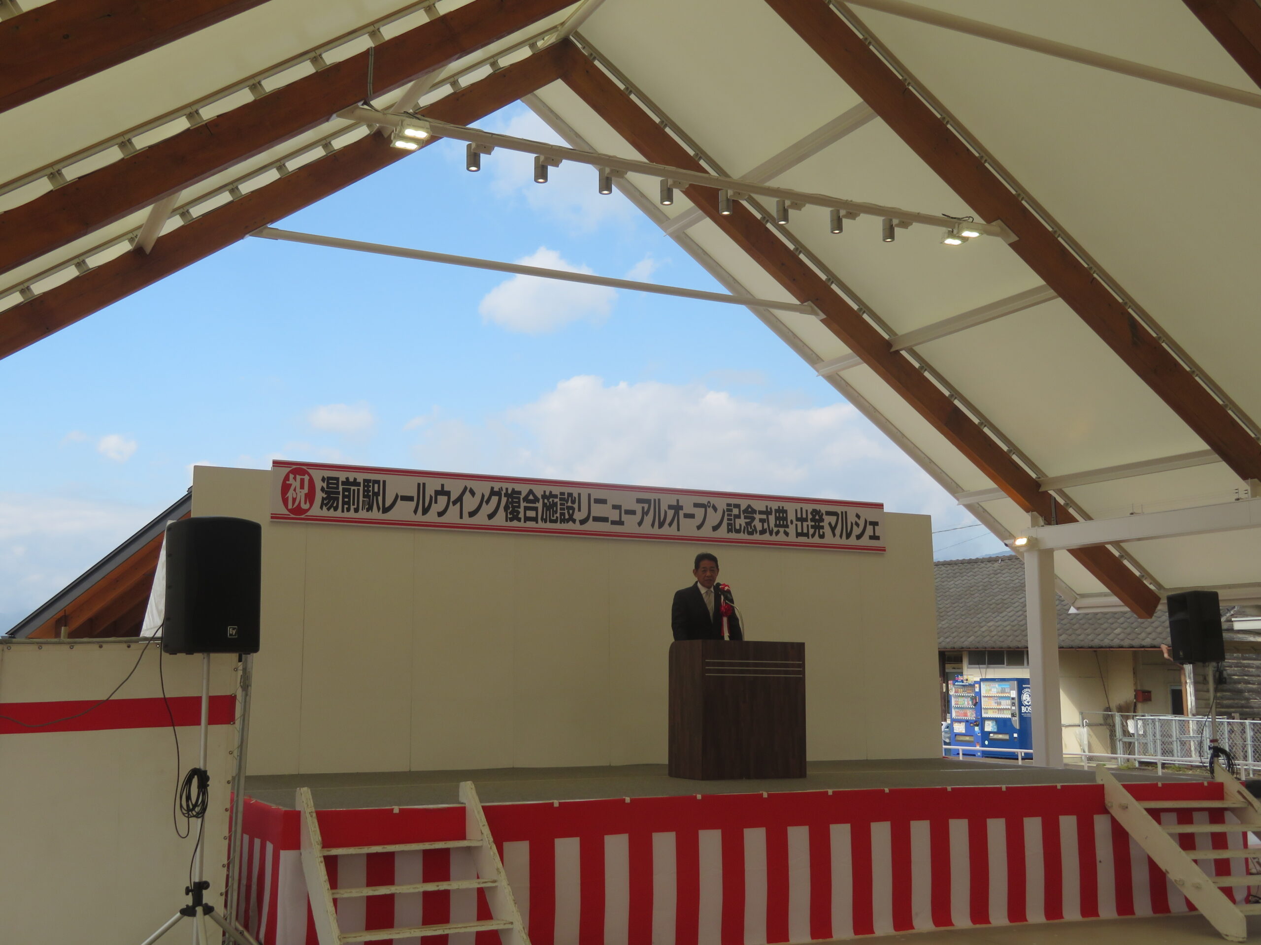 湯前駅レールウイング複合施設落成式 2025.11.05 Facebook Twitter LINE 11月1日(土) 球磨郡湯前町にて「湯前駅レールウイング複合施設落成式」に出席致しました。 令和8年度上半期のくま川鉄道全線運転再開を契機に終着駅の湯前駅周辺の整備を行い「終着駅効果と地域資源活用の交流拠点」として全天候型のイベントスペースが完成いたしました。 前の記事へ Facebook Twitter LINE 人気のキーワード カテゴリーなし 最新の活動報告 2025/11/05 湯前駅レールウイング複合施設落成式 2025/10/27 熊本天草幹線道路の早期実現を求める天草島民集会・球磨郡市農業委員会協議会との意見交換会 2025/10/21 荒木泰臣銅像建立記念式典・熊本西環状道路開通式典 活動報告一覧を見る