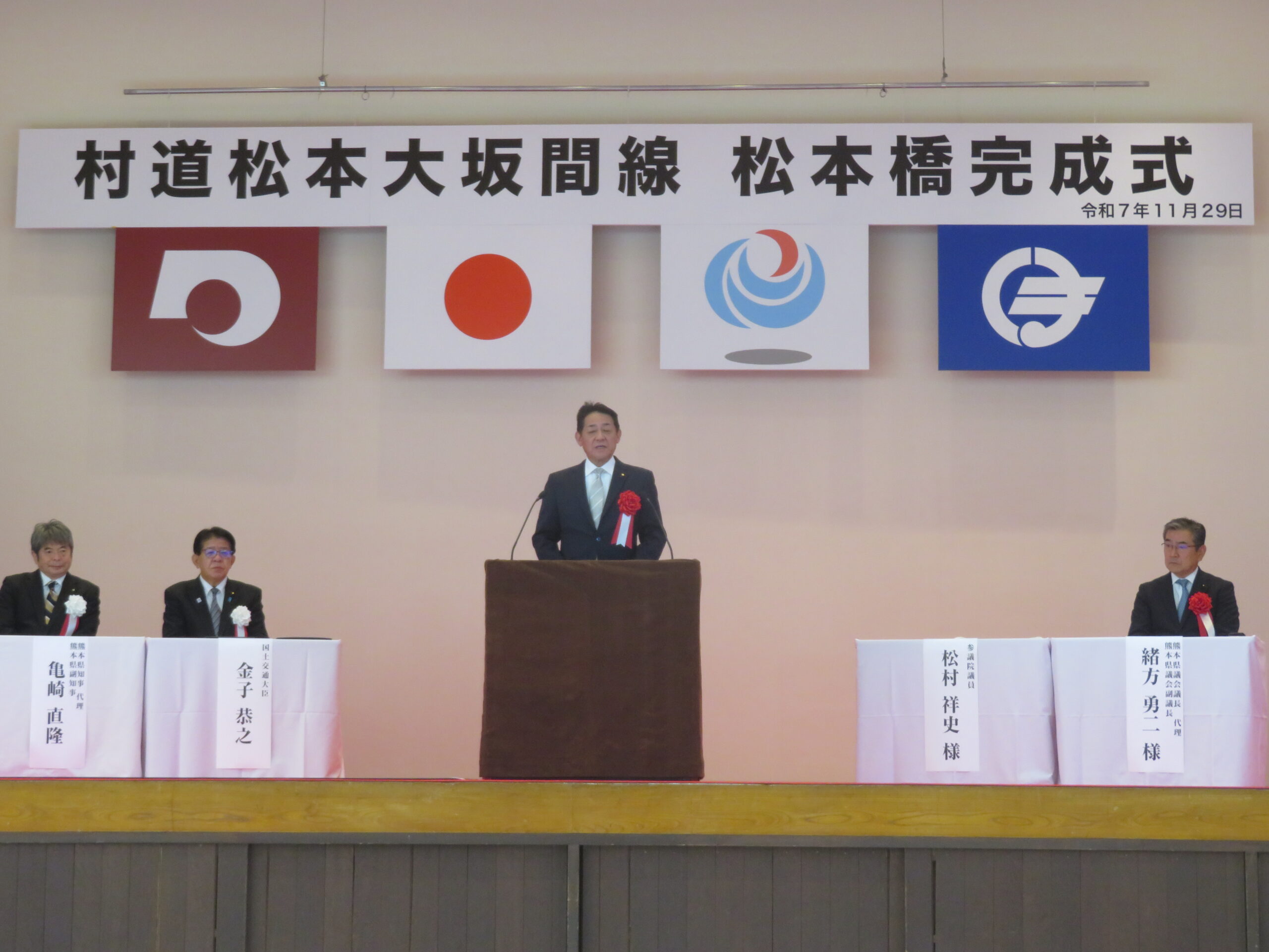 その後、球磨村にて「村道松本大坂間線 松本橋完成式」に出席致しました。