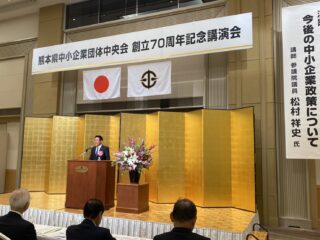 熊本県中小企業団体中央会創立70周年記念式典 2026.01.21 Facebook Twitter LINE 1月19日(月) 熊本市内にて「熊本県中小企業団体中央会創立70周年記念式典・祝賀会」に出席致しました。 また、記念講演では講師としてお招きいただき「今後の中小企業政策について」と題し講演をさせていただきました。 前の記事へ Facebook Twitter LINE 人気のキーワード カテゴリーなし 最新の活動報告 2026/01/21 熊本県中小企業団体中央会創立70周年記念式典 2026/01/17 自由民主党熊本県支部連合会 新春の集い・商工会法施行65周年記念熊本県商工会大会 2026/01/16 衆議院総選挙熊本県連選対本部立ち上げ・熊本市託麻商工会賀詞交歓会 活動報告一覧を見る